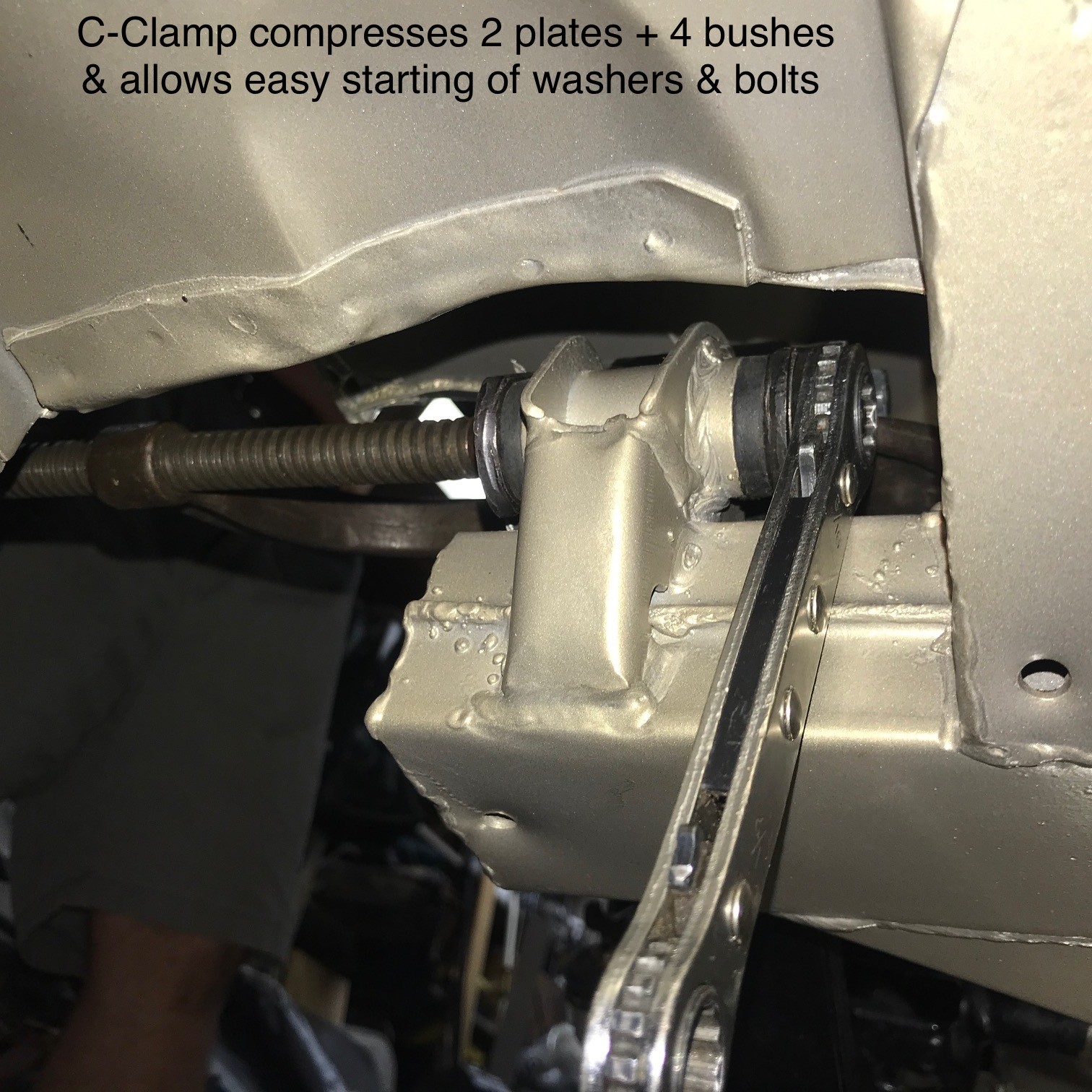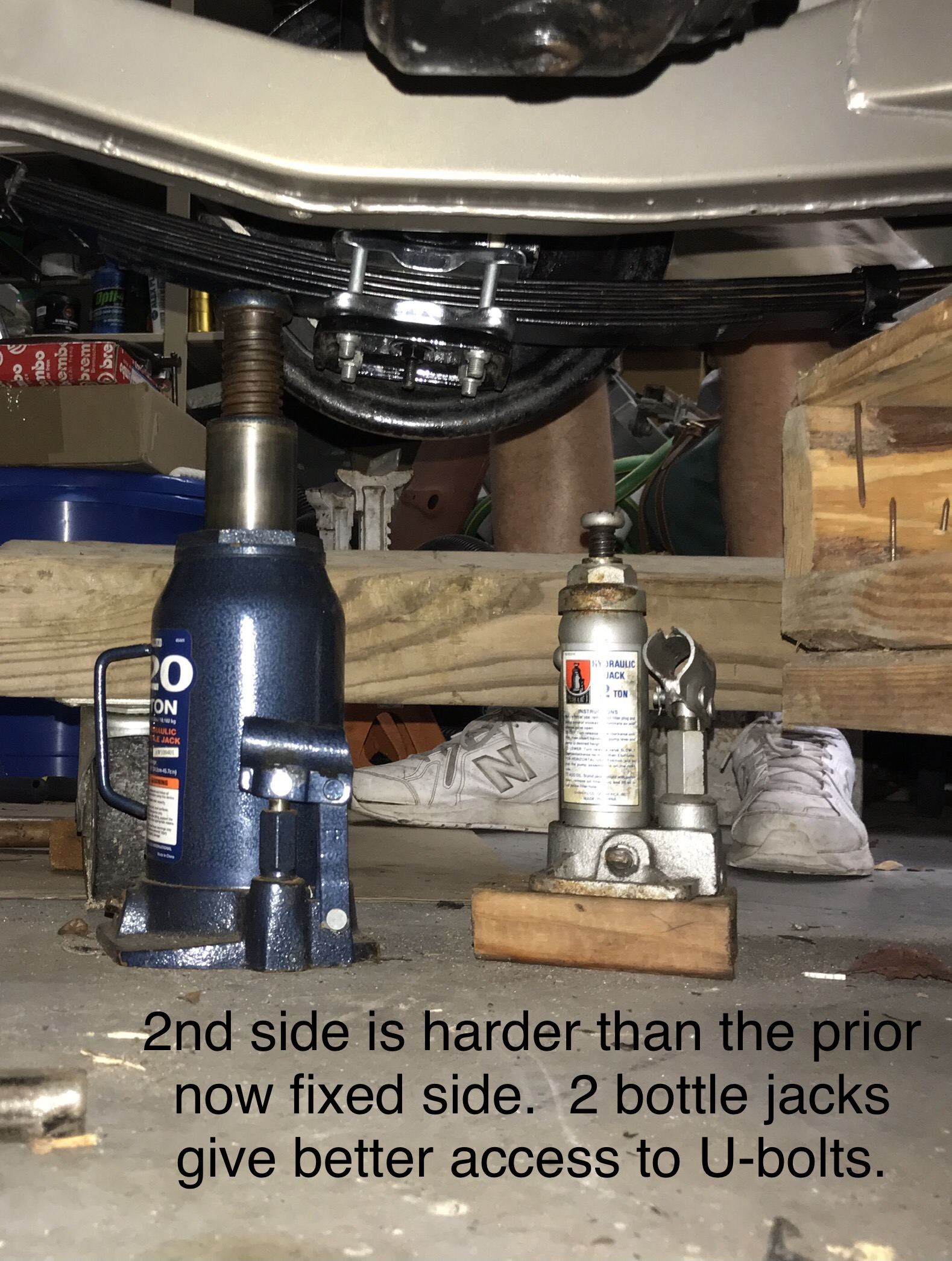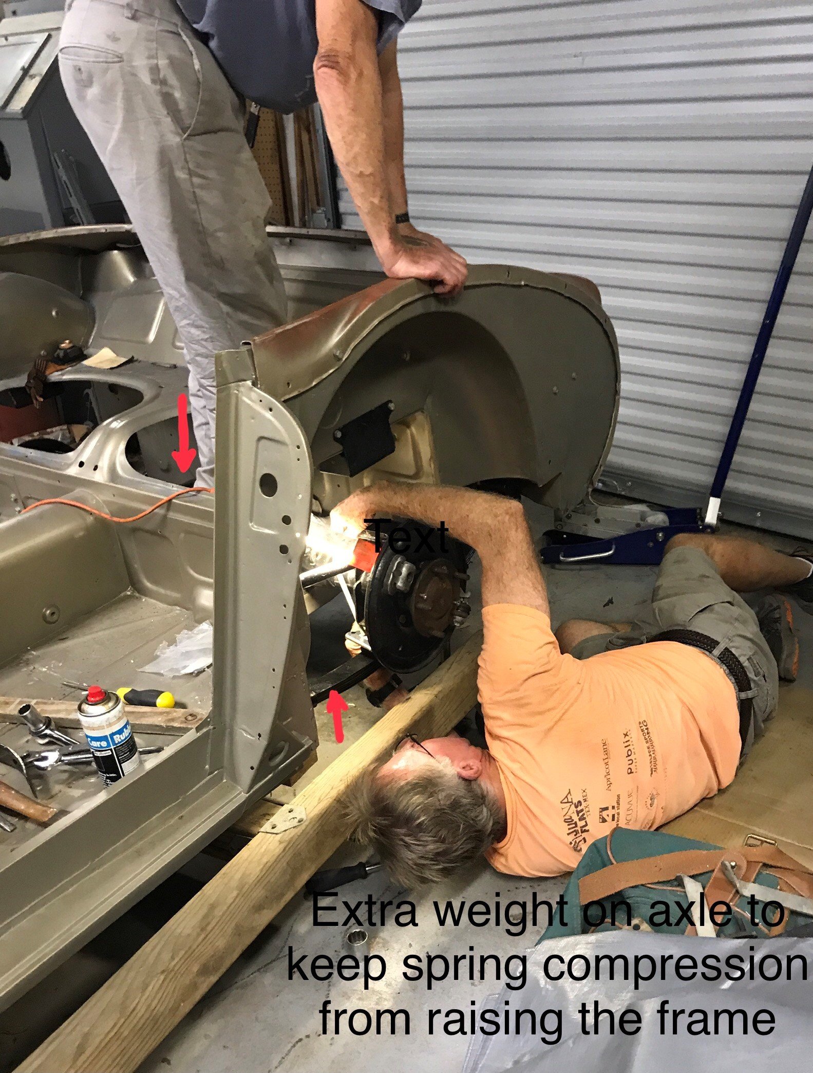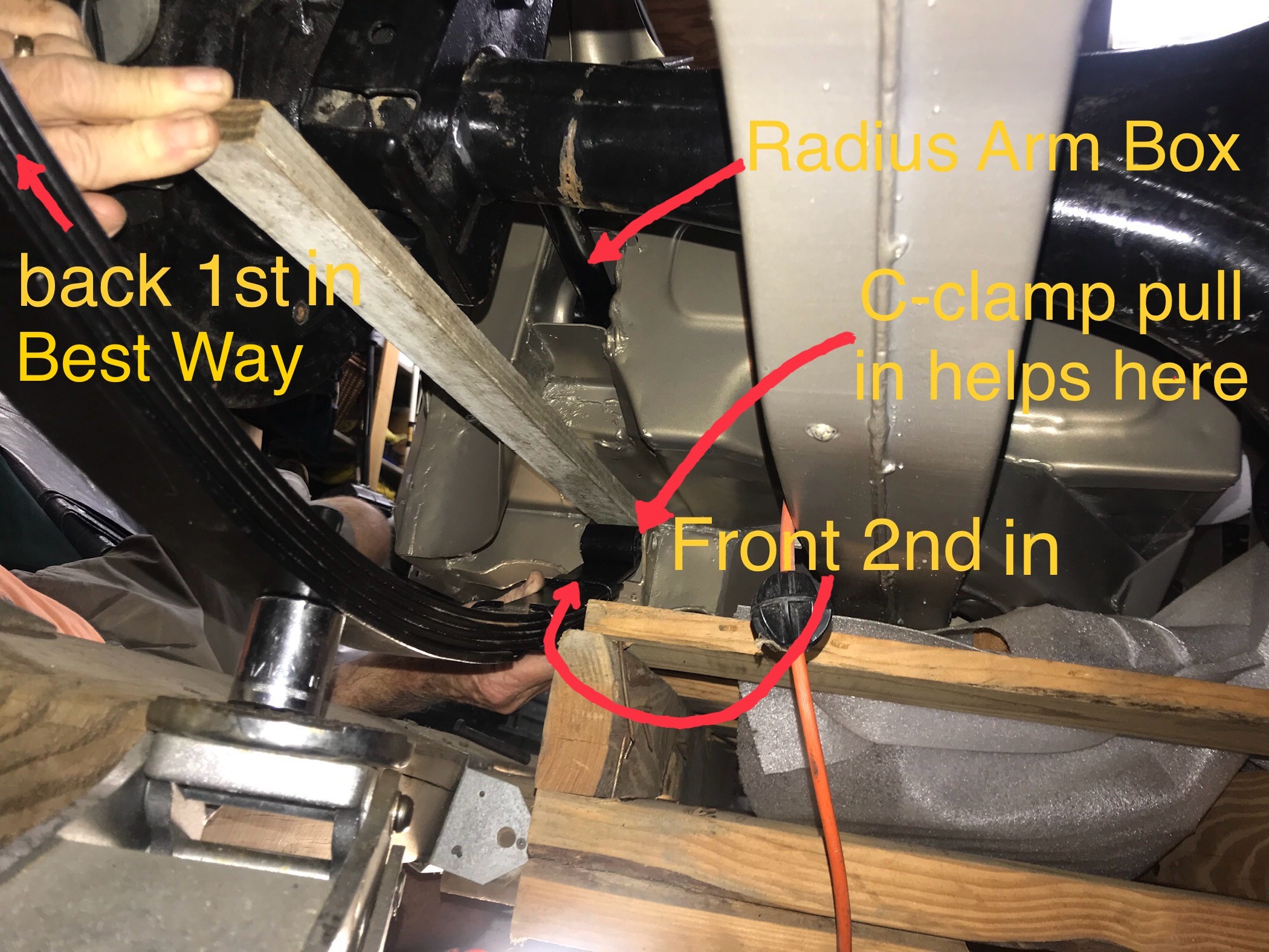 One of our members Rick Stevenson’s many projects is the restoration of a gold BJ8 he purchased in pieces. The project for this meet was to install the axle, radius arms, and rear leaf springs. Members Mike Foster and Bill Maroney spent 2 days figuring out this puzzle under Rick’s watchful eye! Everyone learned a lot! Shown below (courtesy of Bill Maroney) and a series of pictures explaining
