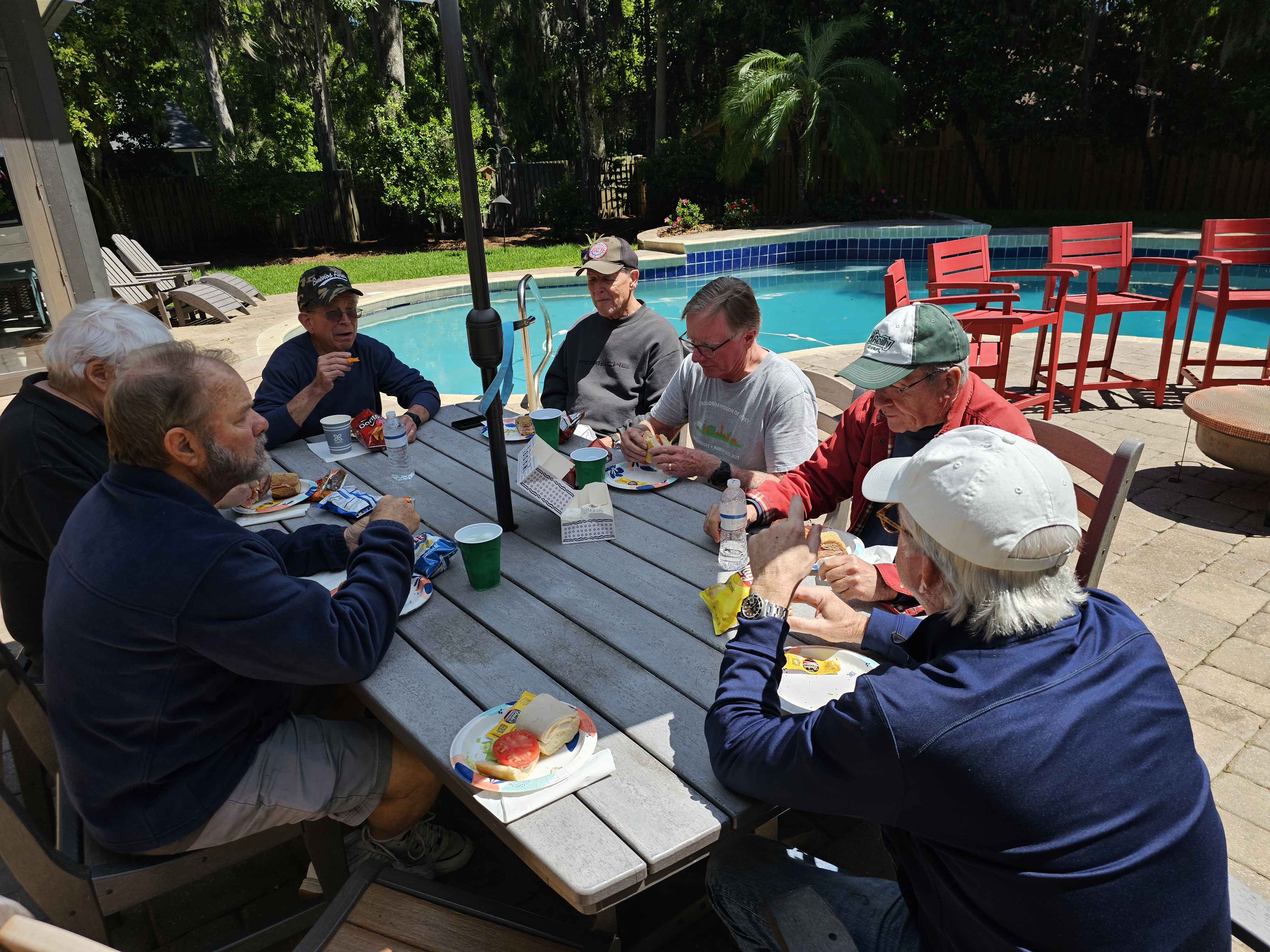 > Then the club provided lunch for members who gathered alongside the Young’s swimming pool to eat